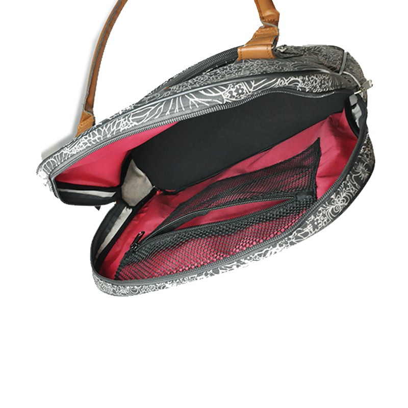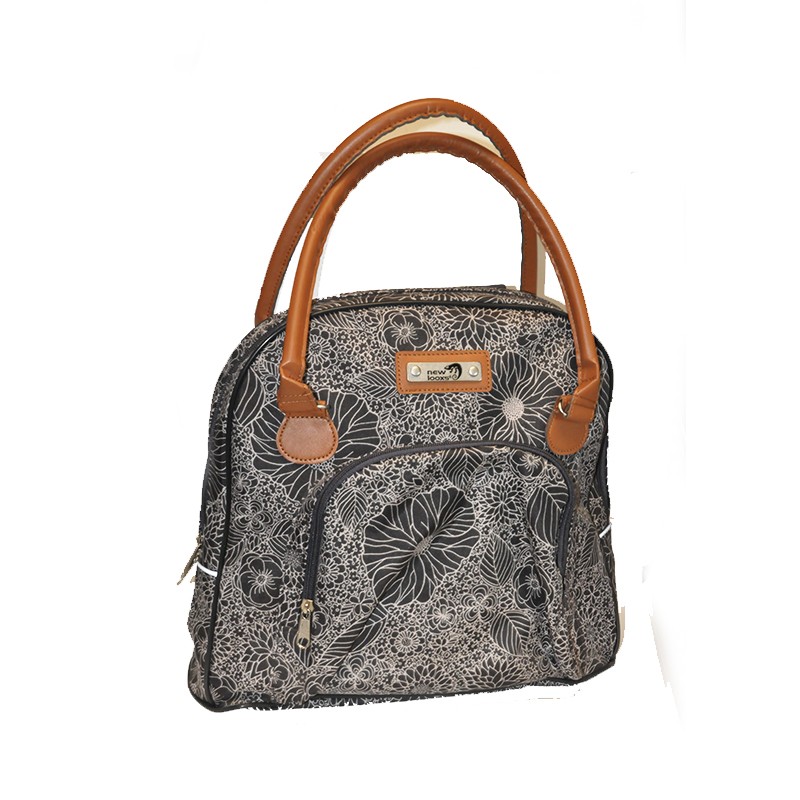 Alforja bolso colo negro con flores con compartimiento para notebook